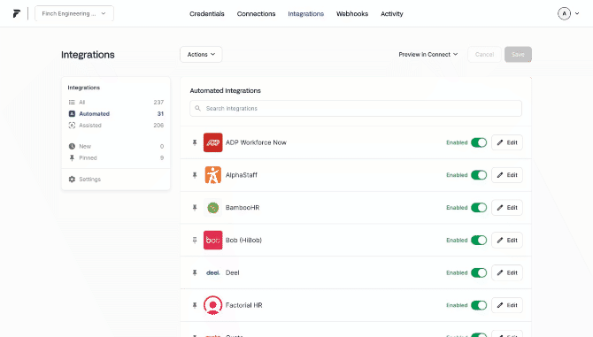 Assisted is an authentication method available to customers using Finch Assist. In this method, Finch asks employers to create a new admin or accountant user in their system. Finch’s operations team then uses that connection to refresh data every 7 days.