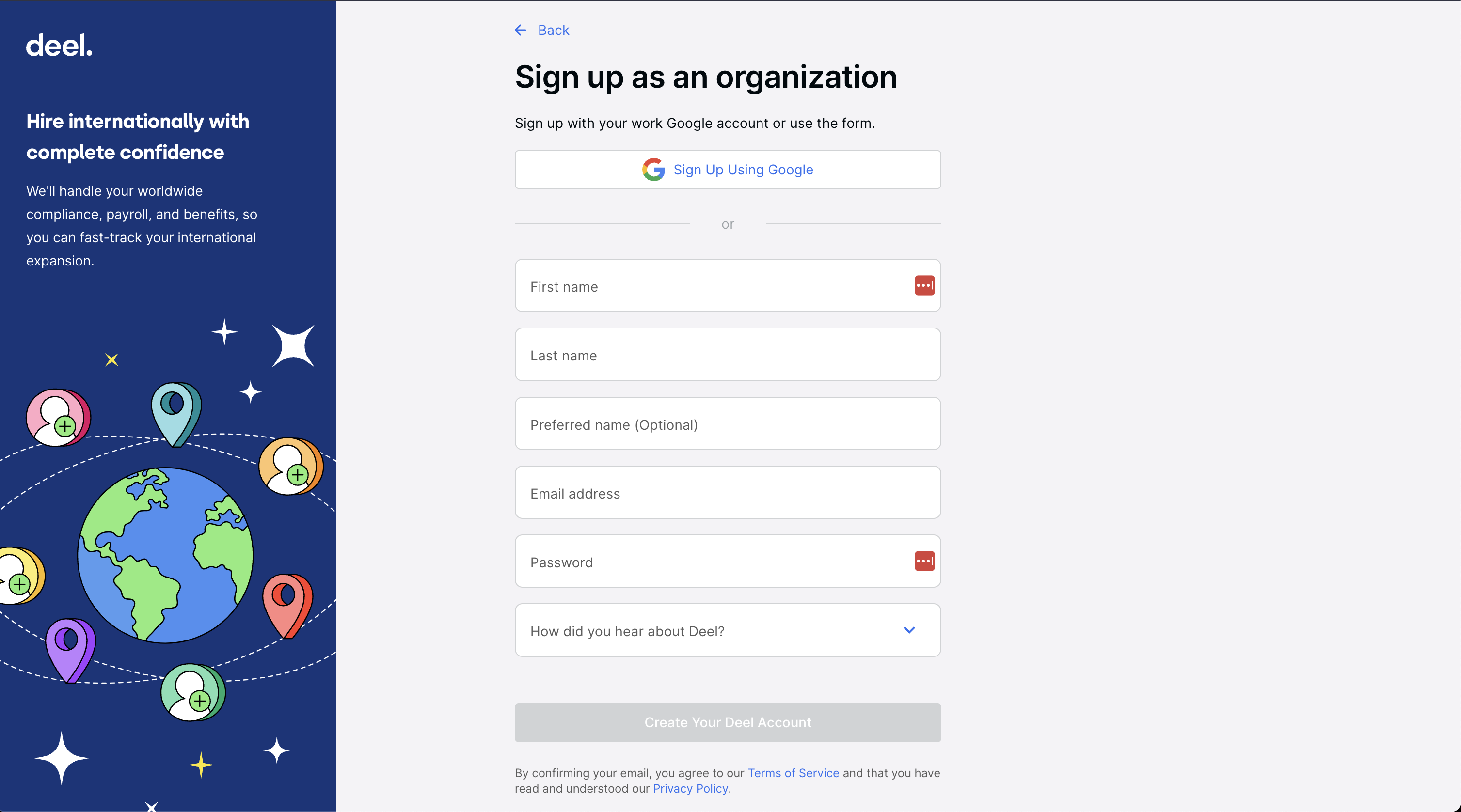 - To connect to this company via Finch, follow the steps outlined above to configure Finch Connect to display provider sandboxes, select Deel, and input your Deel credentials into Deel’s OAuth flow.